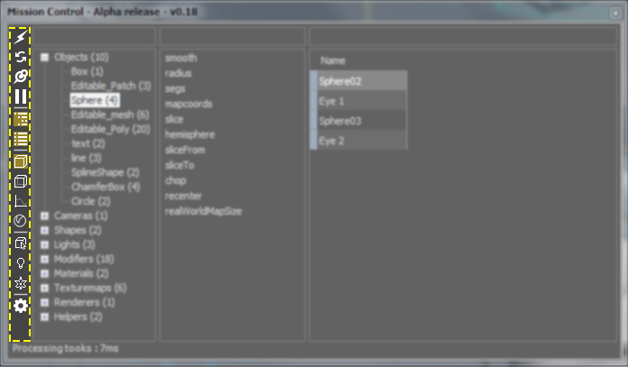 Filter visible toggle : When active, hides non visible classes and objects from Mission Control.